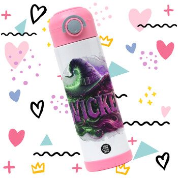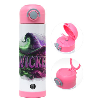 Wicked, Children's hot water bottle, stainless steel, with safety straw, PINK (500ml)