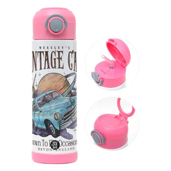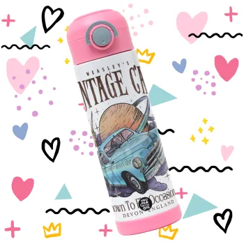 Wizard Flying Car, Children's hot water bottle, stainless steel, with safety straw, PINK (500ml)