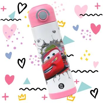 Brick McQueen, Children's hot water bottle, stainless steel, with safety straw, PINK (500ml)