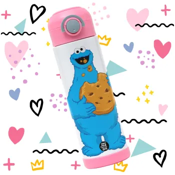 Cookie Monster, Children's hot water bottle, stainless steel, with safety straw, PINK (500ml)