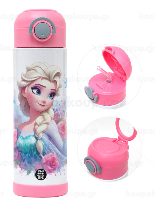 Elsa Princess, Children's hot water bottle, stainless steel, with safety straw, PINK (500ml)