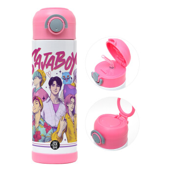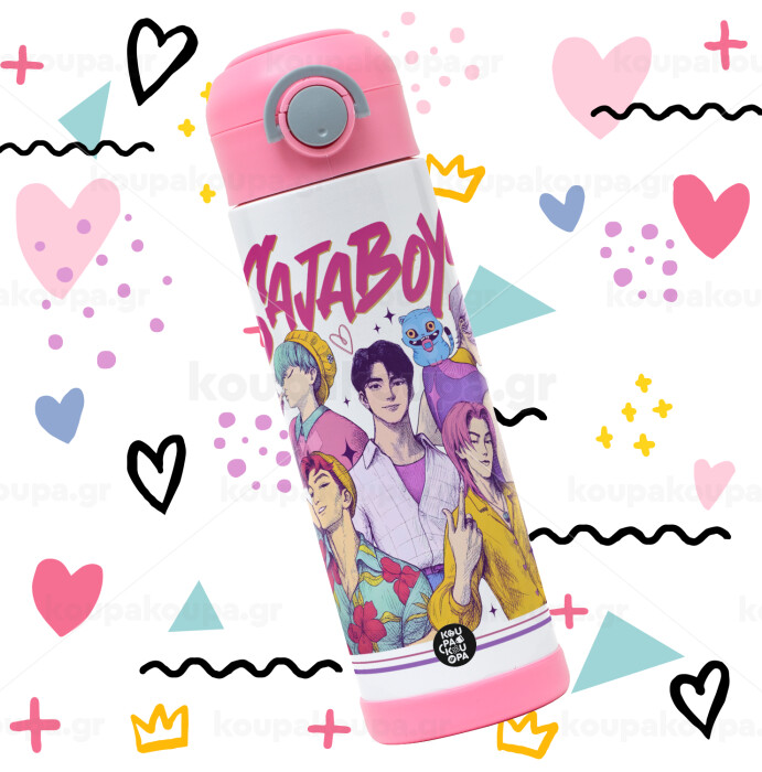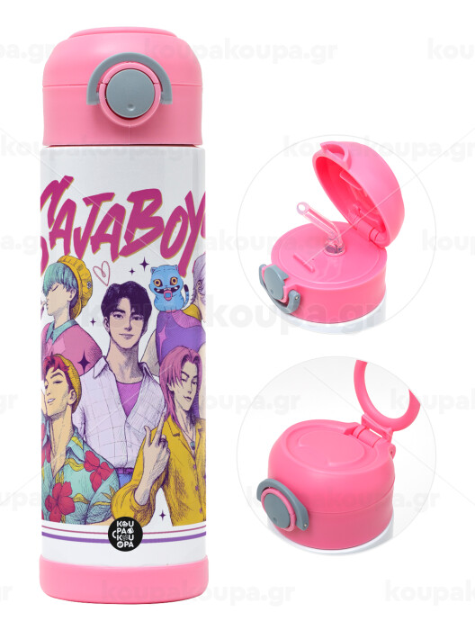 Huntrix Saja Boys, Children's hot water bottle, stainless steel, with safety straw, PINK (500ml)