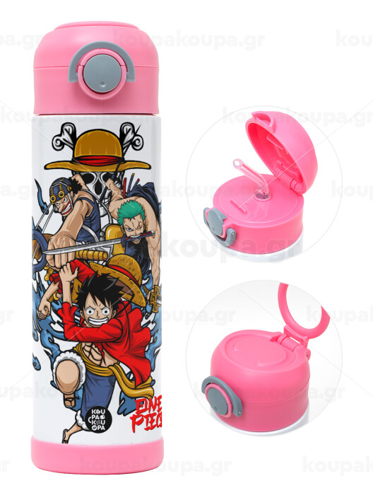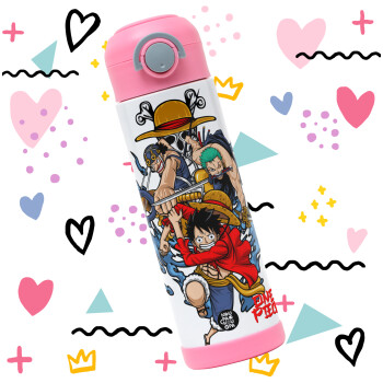 One Piece, Children's hot water bottle, stainless steel, with safety straw, PINK (500ml)