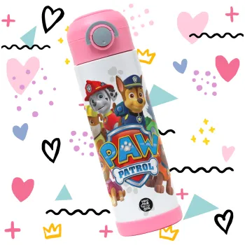 PAW patrol, Children's hot water bottle, stainless steel, with safety straw, PINK (500ml)