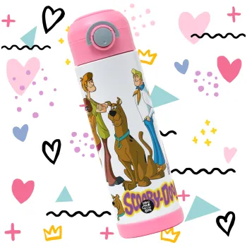 Scooby Doo Characters, Children's hot water bottle, stainless steel, with safety straw, PINK (500ml)