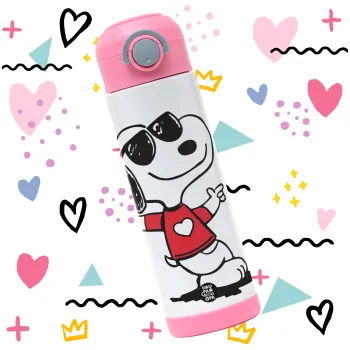 Snoopy καρδούλα, Children's hot water bottle, stainless steel, with safety straw, PINK (500ml)