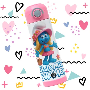 The Smurfs, Children's hot water bottle, stainless steel, with safety straw, PINK (500ml)
