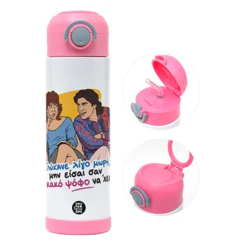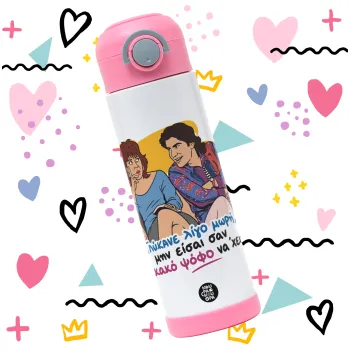 Γλύκανε λίγο, Children's hot water bottle, stainless steel, with safety straw, PINK (500ml)
