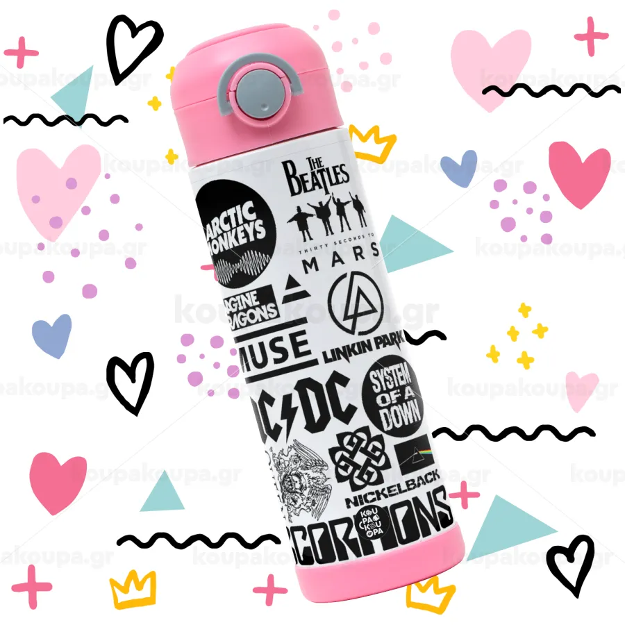 Best Rock Bands Collection, Children's hot water bottle, stainless steel, with safety straw, PINK (500ml)