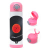 Note: Bottles/thermoses with a lid that has opening parts (mouthpiece or button) do not have a screw safety mechanism. They only offer basic protection from leaks and it is possible, in a sideways or upside-down position, as well as in a bag with intense movement, to present leaks from the cap.