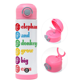 Elephants And Donkeys Grow Big Ears, Children's hot water bottle, stainless steel, with safety straw, PINK (500ml)