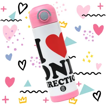 I Love, One Direction, Children's hot water bottle, stainless steel, with safety straw, PINK (500ml)