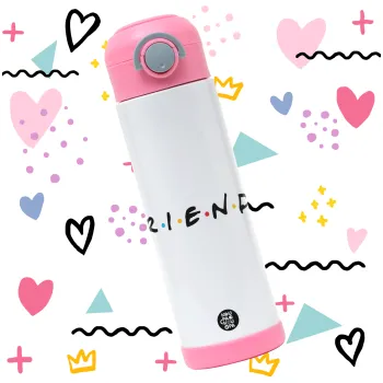 Friends, Children's hot water bottle, stainless steel, with safety straw, PINK (500ml)