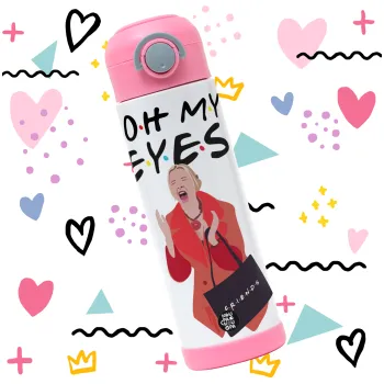 Friends,. oh my eyes Phoebe, Children's hot water bottle, stainless steel, with safety straw, PINK (500ml)