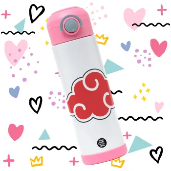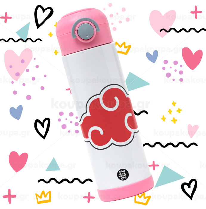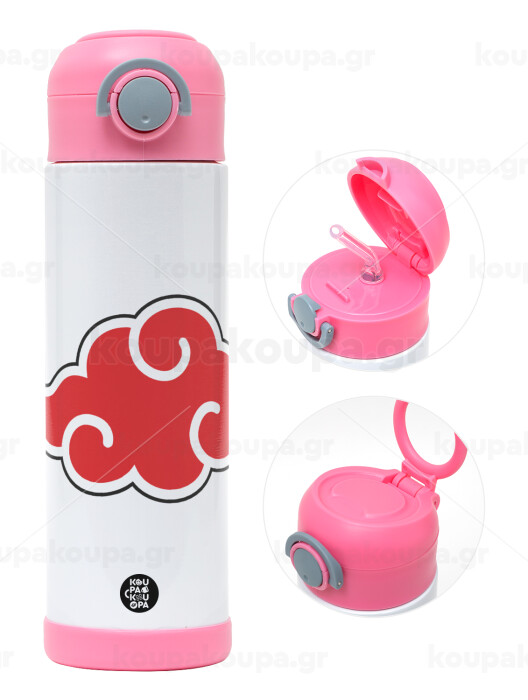 Naruto Akatsuki Cloud, Children's hot water bottle, stainless steel, with safety straw, PINK (500ml)