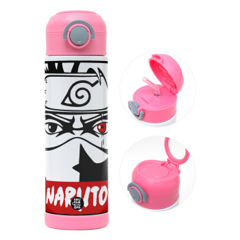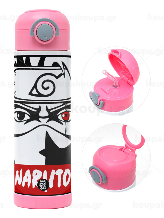 Naruto anime, Children's hot water bottle, stainless steel, with safety straw, PINK (500ml)