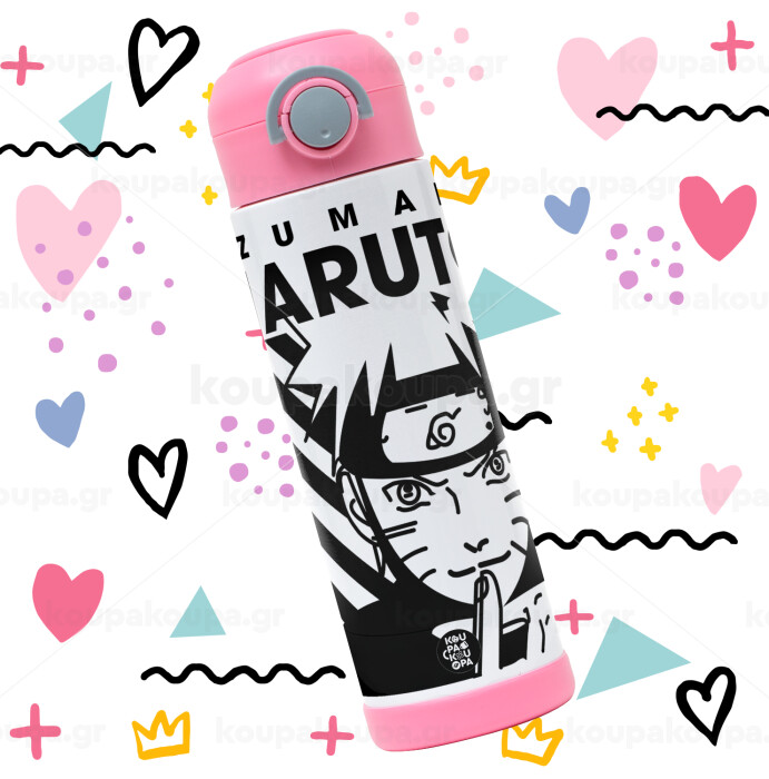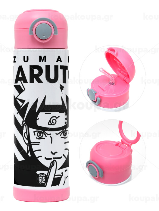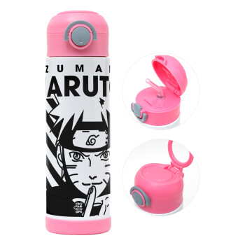 Naruto uzumaki, Children's hot water bottle, stainless steel, with safety straw, PINK (500ml)