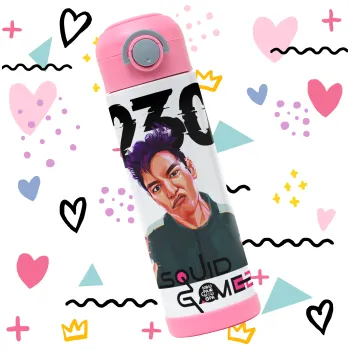 Squid game 2, Thanos 230, Children's hot water bottle, stainless steel, with safety straw, PINK (500ml)