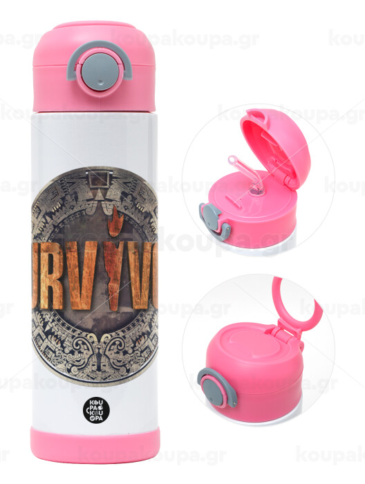 Survivor, Children's hot water bottle, stainless steel, with safety straw, PINK (500ml)