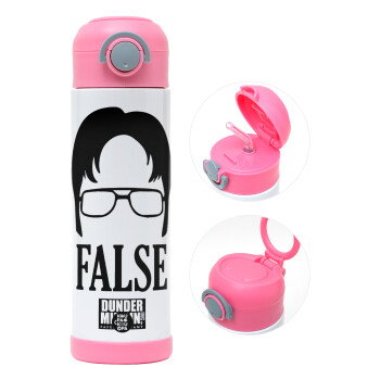 The office Dwight false, Children's hot water bottle, stainless steel, with safety straw, PINK (500ml)