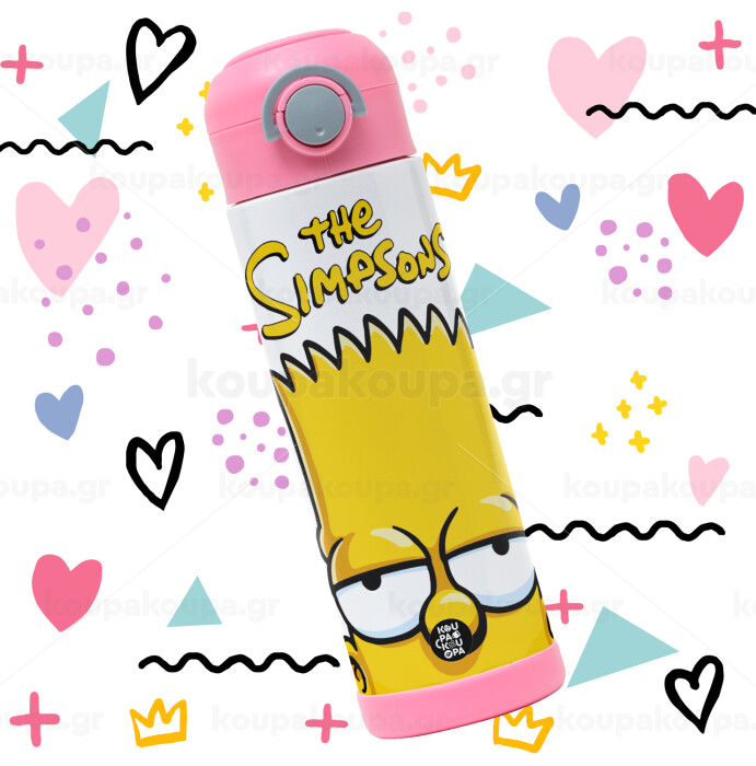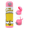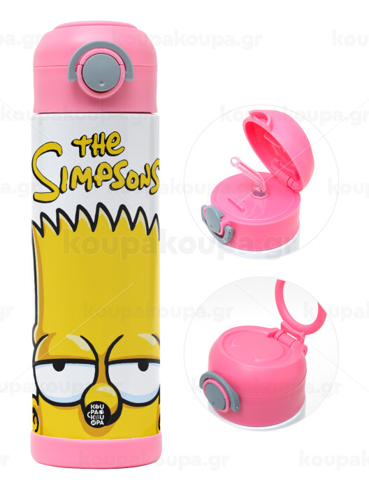 The Simpsons Bart, Children's hot water bottle, stainless steel, with safety straw, PINK (500ml)