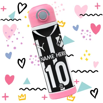 ΟΦΗ εμφάνιση, Children's hot water bottle, stainless steel, with safety straw, PINK (500ml)