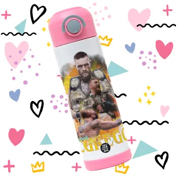 Conor McGregor Notorious, Children's hot water bottle, stainless steel, with safety straw, PINK (500ml)