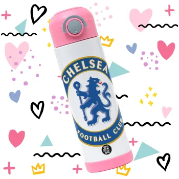 FC Chelsea, Children's hot water bottle, stainless steel, with safety straw, PINK (500ml)