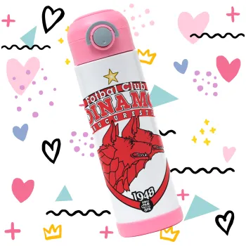 FC Dinamo Bucuresti, Children's hot water bottle, stainless steel, with safety straw, PINK (500ml)