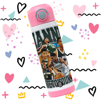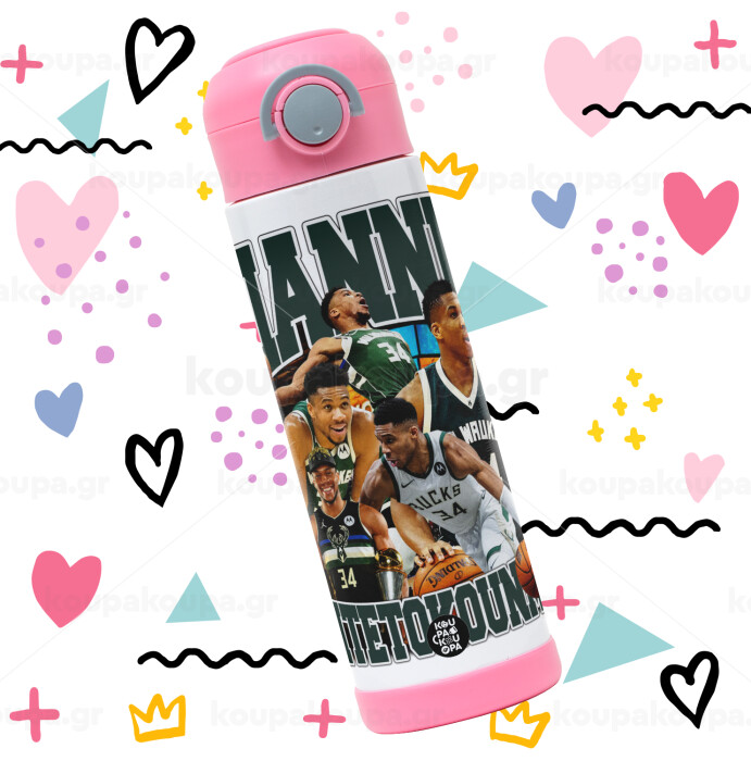 Giannis Antetokounmpo, Children's hot water bottle, stainless steel, with safety straw, PINK (500ml)