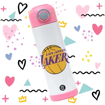 Lakers, Children's hot water bottle, stainless steel, with safety straw, PINK (500ml)