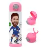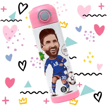 Lionel Messi drawing, Children's hot water bottle, stainless steel, with safety straw, PINK (500ml)