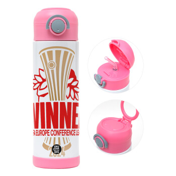 Europa Conference League WINNER, Children's hot water bottle, stainless steel, with safety straw, PINK (500ml)