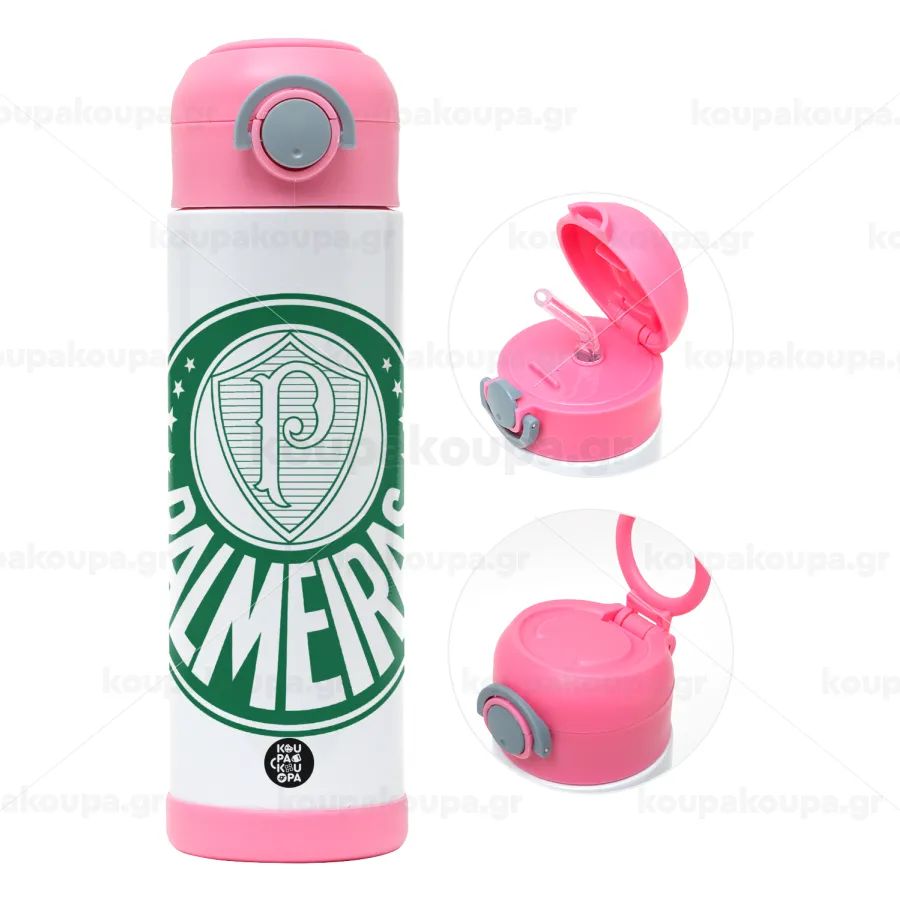 Palmeiras, Children's hot water bottle, stainless steel, with safety straw, PINK (500ml)