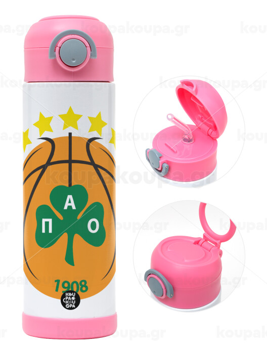 PAO BC, Children's hot water bottle, stainless steel, with safety straw, PINK (500ml)