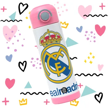 Real Madrid CF, Children's hot water bottle, stainless steel, with safety straw, PINK (500ml)