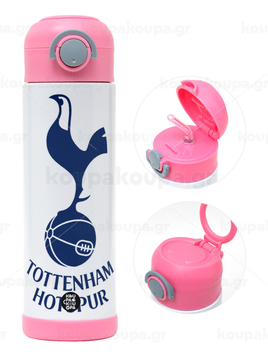 Tottenham Hotspur, Children's hot water bottle, stainless steel, with safety straw, PINK (500ml)