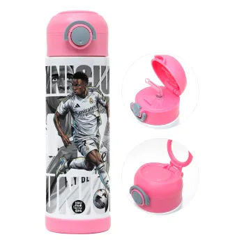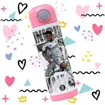 Vinícius Júnior (Βινίσιους Ζούνιορ), Children's hot water bottle, stainless steel, with safety straw, PINK (500ml)
