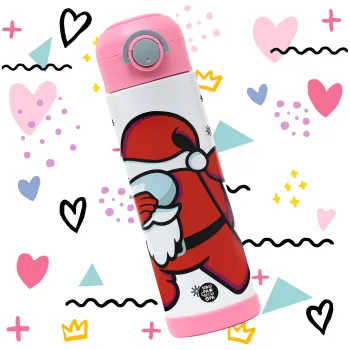 Among US Xmas, Children's hot water bottle, stainless steel, with safety straw, PINK (500ml)