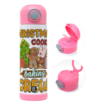 Christmas Cookie Baking Crew, Children's hot water bottle, stainless steel, with safety straw, PINK (500ml)