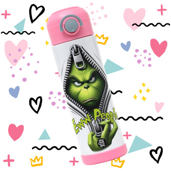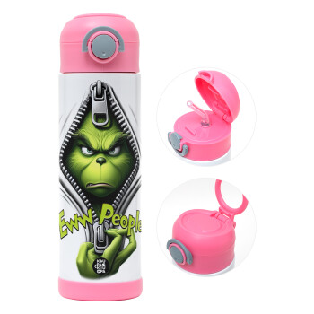Grinch, eww people, Children's hot water bottle, stainless steel, with safety straw, PINK (500ml)