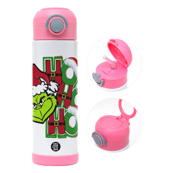 Grinch ho ho ho, Children's hot water bottle, stainless steel, with safety straw, PINK (500ml)