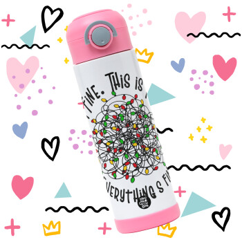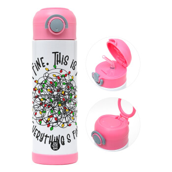 It's Fine I'm Fine Everything Is Fine, Children's hot water bottle, stainless steel, with safety straw, PINK (500ml)