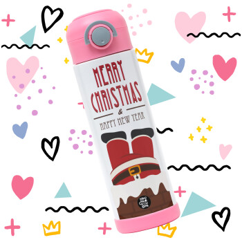 Merry christmas chimney, Children's hot water bottle, stainless steel, with safety straw, PINK (500ml)