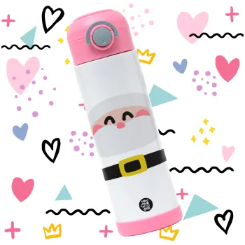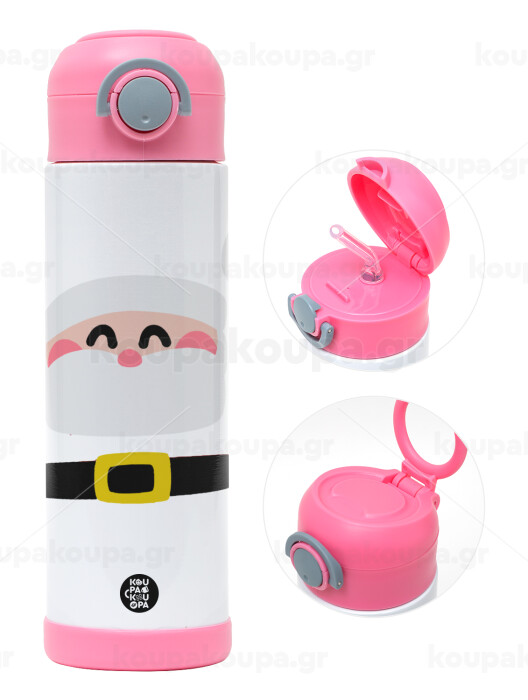 Simple Santa, Children's hot water bottle, stainless steel, with safety straw, PINK (500ml)