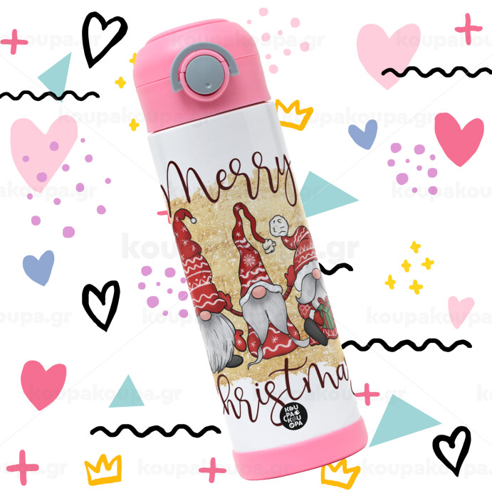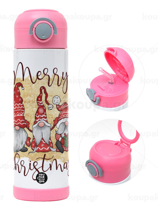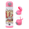 Xmas Elves, Children's hot water bottle, stainless steel, with safety straw, PINK (500ml)
