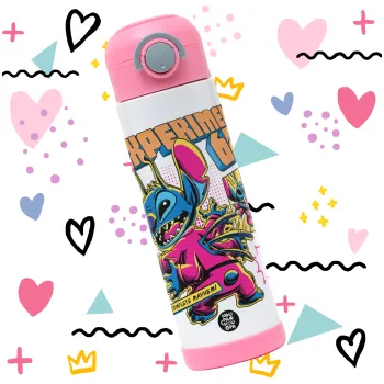 Stitch Experiment 626, Children's hot water bottle, stainless steel, with safety straw, PINK (500ml)