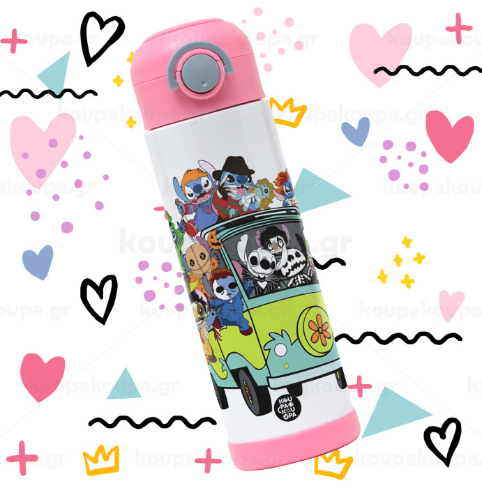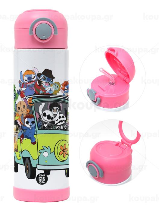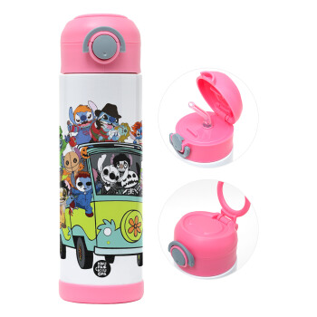 Stitch Halloween scooby car, Children's hot water bottle, stainless steel, with safety straw, PINK (500ml)