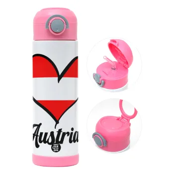 Austria flag, Children's hot water bottle, stainless steel, with safety straw, PINK (500ml)