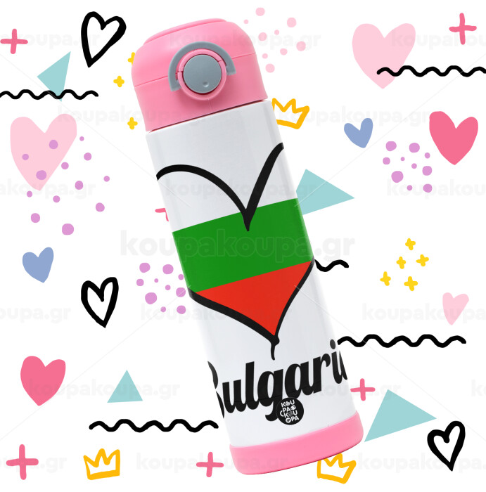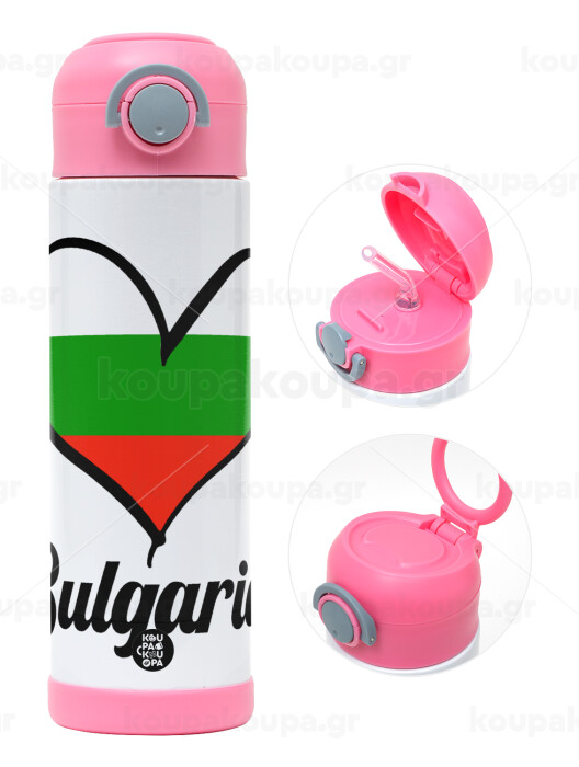 Bulgaria flag, Children's hot water bottle, stainless steel, with safety straw, PINK (500ml)